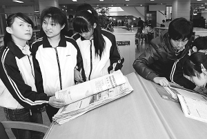 12月2日,西安盲哑学校的视障学生在陕西省图书馆视障阅览室触摸报纸。