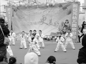 据了解,演出的节目有十多个,时间虽短,但都是“演员”们的拿手好戏。参加演出的有社区居民、社区工作人员及社区里的学生。可爱的小朋友们表演的《弟子规》让在场的居民乐开了花。参加表演的社区居民黄鹤说:“我平常在单位也参加演出,今天在自己社区里表演很高兴。我觉得这样的活动增进了居民间的感情,也让社区里的居民更加融洽。”