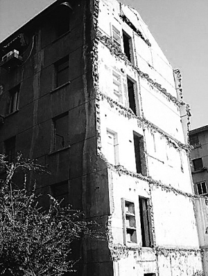 无锡的通扬新村是1976年建成的老新村,为满足通扬路拓展的需要,该小区靠近通扬路一侧的楼房均被“切”了一半。如今,通扬路早已通车,大部分“切”了一半的住房都被修补完好,搬走的住户也得到妥善安置。可是近日,却有一幢楼的居民不断反映,51号楼在今年5月被告知要拆迁后至今没有下文。大半年过去了,29户居民整日提心吊胆地生活在只有半边楼房的家里……南长区拆迁办政策业务科工作人员说,现在还没有确定具体拆除通扬新村51号楼的时间,他们在等待街道的通知,因为街道仍然在研究拆迁方面的细节问题,他们只是一个辅助作用,具体要等街道通知。图为被切了一半的楼房。扬子 摄
