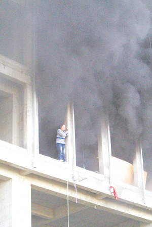昨天上午11时许,位于市区中州路与滨河路交叉口的易天国际广场突发火情,周口消防官兵迅速赶到现场,将大火扑灭。火灾未造成人员伤亡。图为火灾现场。相关报道见A04版 晚报记者 朱海龙 摄