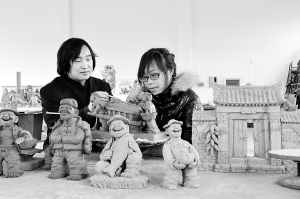 12月7日,郸城泥塑大师张振福接受河南省新乡市的女大学生浮宗敏拜师。今年10月,在郑州国际会展中心,女大学生浮宗敏看到了张振福泥塑,便被他的粗犷、豪放、细腻、传神的艺术作品所吸引。她决定在郸城跟随张振福学习3年。晚报记者 徐松 摄