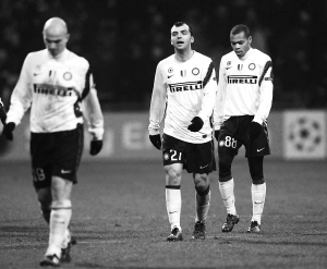 本报综合消息 继上周意甲落败后,国际米兰队昨天在欧冠小组赛最后一战中又一败涂地,0比3惨败给小组垫底的不来梅队,毫无上届冠军的腔调。国米虽然以小组第二得以出线,不过他们在世俱杯前的状态让人担忧。