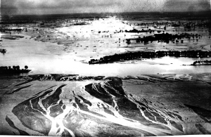 1938年6月,侵华日军占领豫东重镇开封后,大举西进,直逼郑州、武汉,国民党政府为阻止日军进犯,不顾广大人民群众的死活,在郑州花园口扒开了黄河大堤。滔滔黄河水一泻千里,广阔的沃野被洪水吞没,受灾面积达5.4万平方公里,使豫、皖、苏三省44个县市89.3万人命丧黄泉,1200多万人流离失所,无家可归,形成了灾难深重的黄泛区。