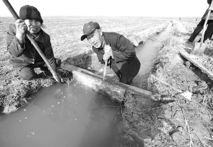 在安徽省颍上县八里河镇韩郢村,当地农民在进行抗旱(12月8日摄)。