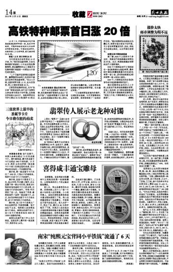 高铁特种邮票首日涨20倍
