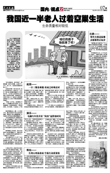 我国近一半老人过着空巢生活