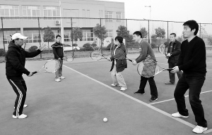 12月10日,周口日报的职工在教练的指导下练习打网球。为丰富职工文化生活,营造和谐向上的工作氛围,周口日报社组织职工积极参加各项文体活动,搭建职工之间相互交流、沟通的平台。记者 王映 摄