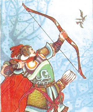 长孙晟的射术确实惊人。北周被隋朝取代后,长孙晟继续得到重用。有一次,隋文帝选了二十个善射的人进行比赛,结果长孙晟六箭皆中,率队得胜。恰好此时天上有一群飞鸟经过,隋文帝令取来弹丸,让长孙晟打鸟,只见将军连发十弹,弹无虚发,技惊四座。