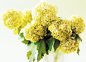 普通人购花一般都比较少买这种花,但在设计师眼中,绣球花是一种非常有情趣的装饰用花。该花初开时是绿色,其后会慢慢转色,且带有清香,其形态像绣球,因而被叫做绣球花。此花的伞形花序如雪球,在椭圆形的绿叶中,非常好看。绣球花有多种颜色,蓝色的花语为浪漫、美满,桃红色或白色的花语为希望。室内空间大的房子、别墅和复式单位特别适合用这种花摆设。(新民)