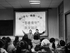 本报讯 为进一步推动学生养成爱读书、读好书的良好习惯,激发学生的阅读热情,提高学生的朗读水平,市区七一路一小于12月8日开展了“书香童年”美文诵读比赛。