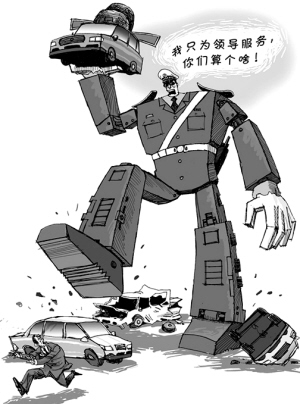虽然被处分的交警触犯了众怒,但还是有很多人在网上认为他不过是说了一句不该说的“实话”,然后不幸撞在了记者的摄像头上。他似乎比别人更倒霉一些。确实,没有几个警察敢明目张胆地说“只为领导服务”,即便是这位很剽悍的副中队长也是因为“领导的车子马上就要来”,情急之下才口不择言。事实上,“只为领导服务”的警察绝不止这位副中队长一人。同样的人在做同样的事情,大多数人只做不说,什么问题都没有,个别人做了之后又说出来了,就捅了娄子。