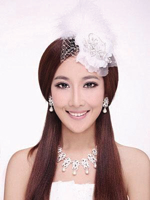 轻灵柔软的羽毛头饰总赋予新娘性感魅惑的色彩,富有动感的造型时时流露着一份巧妙精致的心思。