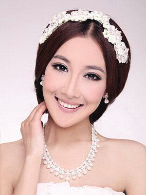精致纤柔的外观让缎面花冠拥有了清丽优雅的质感,用这类头饰装扮的新娘,周身都透着一股秀丽柔美的纯净气质。
