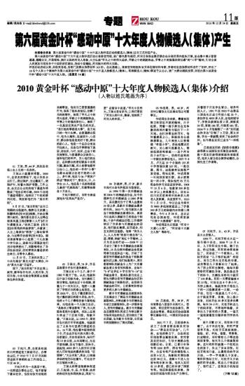 第六届黄金叶杯“感动中原”十大年度人物候选人(集体)产生