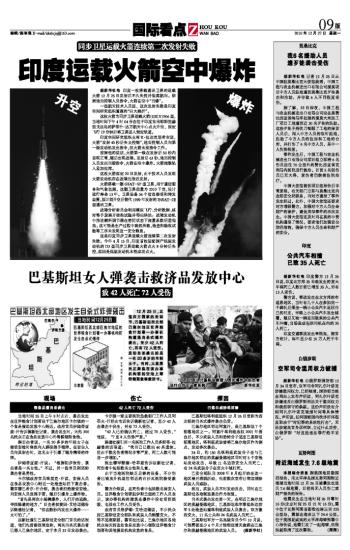 据新华社电 印度一枚搭载通讯卫星的运载火箭12月25日发射后不久失控并偏离航向。依照地面控制人员指令,火箭在空中“自爆”。