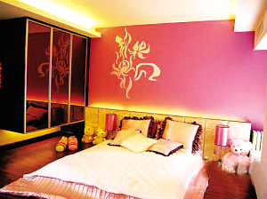 装饰提醒:浓重的粉红会让人的精神处于亢奋状态,令居住者情绪烦躁,所以设计师大多建议使用中性的粉红色。这种色彩可以通过布艺或墙纸来体现,如在卧室、客厅的墙面、角落,都可以适当出现不同图案和造型的粉红色。