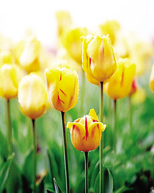 郁金香是荷兰的国花,在国内也非常受欢迎,其形体清隽,色彩艳丽,以红、黄和紫色最受插花人士喜爱。19世纪,法国作家大仲马所写的传奇小说《黑郁金香》,赞美这种花“艳丽得叫人睁不开眼睛,完美得让人透不过气来”,其独有的高贵魅力确实让人无法抗拒。冬日的居室,最适宜插上一瓶黄色或红色的郁金香,令家里更具阳光的暖意。(陈玉霞)