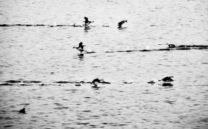 昨天,在沙颍河周口大闸上游清澈的水面上,善于捕鱼的正在四处游荡,它们时而追逐嬉戏,时而潜下水底,时而引吭高歌……