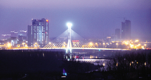 2010年通车的大庆路桥不仅方便了市民出行,更成为城市新地标,是周口夜景的一大亮点。