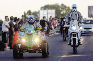 1月2日,参赛车手在抵达罗萨里奥市后受到当地市民欢迎。达喀尔拉力赛当天举行了首日的正式比赛。新华社发