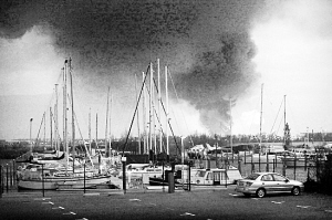 目击者看到,现场冒起浓烟。穆尔代克镇政府提醒居民留在家中,浓烟“可能导致眼部和呼吸系统不畅”。