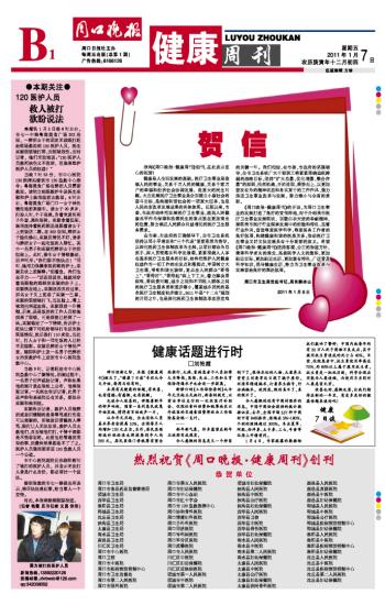 欣闻《周口晚报·健康周刊》创刊,在此表示衷心的祝贺!