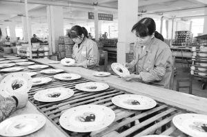 广西北流市三环集团经过层层筛选,获得英国王室婚礼用瓷订单。据了解,此次定制的瓷器共有5个品种共计16008件,主要用于英国威廉王子的婚礼用瓷以及婚礼的礼品用瓷。上图为员工在生产英国威廉王子婚礼用瓷。左图为印有新郎威廉王子与新娘凯特·米德尔顿合影的瓷盘。新华社发