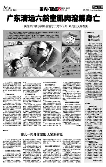 广东清远六龄童肌肉溶解身亡