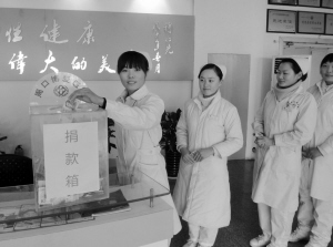 1月12日上午,周口博爱妇科医院举行“温暖冬天——希望工程·爱心大动员”捐款活动。该院工作人员积极行动,纷纷献出自己的一份爱心。据了解,他们将用这些爱心款捐购买保暖物品,送给太康县老冢镇晨光小学的孩子们,让那里的留守儿童过上一个温暖的冬天。图为捐款现场。(本报记者摄)