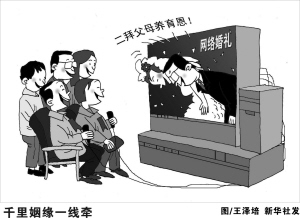 春节临近,举办婚礼的年轻人日渐增多。对于那些在外工作、打工,不能回家举办婚礼或不愿意把钱花在路上的年轻人来说,网络婚礼不失为一种时尚、节约、文明的选择。 新华社发