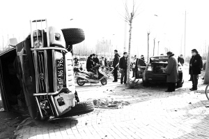 昨天14时许,在淮阳县南二环路与羲皇大道交叉口,两辆小车相撞,一辆侧翻在路口,一辆“瘫痪”在匝道。车上4人不同程度受伤,车辆均严重受损。据附近居民说,由于该路口车少人稀,没装红绿灯,过往车辆不注意减速,最近一个月内至少已发生大小6起车辆相撞事故。