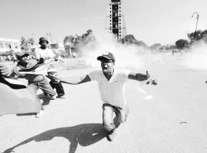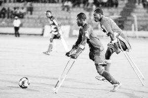 本月9日,海地首都太子港国家体育场,海地“扎尔延截肢者足球队”与“国家截肢者足球队”进行友谊赛。他们拄着拐杖,快速奔跑抢球。按照比赛规则,球员禁止触碰对方的拐杖和假肢,寓意不触对方伤痛。这些球员在去年强震中被埋压,得解救后截去一条腿。主办方说,举行“一条腿的足球赛”,寓意在这块支离破碎的土地上,蕴含着复苏和希望。