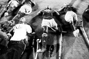 或许因为重建工作步履维艰,或许因为生活尚未恢复,震后一年,海地作为一个国家不准备大张旗鼓地纪念,许多海地人作为个体着手默默地纪念。1月9日,在首都太子港的一片空地上,举行了一场“一条腿的足球赛”。这场球赛,不为竞技,不为娱乐。球员们或拄着拐杖、或安装假肢,用幸运保留下来的一条好腿快速奔跑抢球、传球、射门。球赛想告诉人们,海地残缺着,海地人却坚持着。