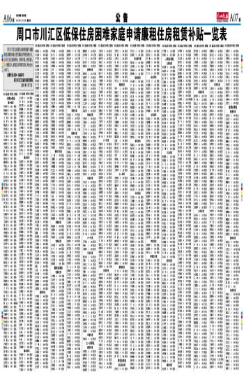 周口市川汇区低保住房困难家庭申请廉租住房租赁补贴一览表