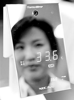据新华社电 正值流感肆虐的季节,日本一家科技公司日前宣布,他们发明了一种“体温镜”,人们只要对着镜子一照,就能确定自己有没有发烧。