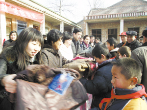 团市委相关负责人介绍,“温暖冬天·希望工程爱心大动员”是团省委为响应省委书记卢展工在济源调研时的重要指示精神开展的爱心活动,旨在帮助我省广大农民工子女和困难小学生温暖过冬,并把社会各界的爱心带到孩子们身边,使孩子们感受到社会各界的关注和关爱。自本月开展活动至今,市地税局等单位的团组织和青年文明号行业主管部门与各县市区留守儿童比较集中的学校已结成了30个帮扶对子,为每所学校提供价值不低于3000元的棉帘子、羽绒服、棉帽子、棉手套等保暖护具,确保留守儿童和困难儿童温暖过冬。