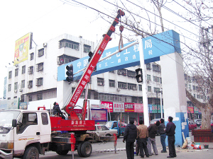 1月14日下午,交警部门工作人员在周口市区五一路与交通大道交叉口安装红绿灯。该路口位于学校和周口客运总站之间,红绿灯的安装将对该路段的交通起到极大的疏导作用。