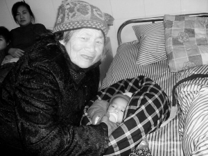 这个不幸的男婴,去年11月29日出生,他的父亲叫霍志成,是沈丘县刘湾镇杜营村人。因为家庭贫困,霍志成年近40岁才成家,儿子出生后,由于妻子智障,照顾孩子的重任便落在霍志成的母亲刘凤英的身上。今年1月6日下午,刘凤英用柴火把砖烧热,用布包好放在孙子脚头给他取暖时,意外燃着了被子,烧伤了孙子的左脚。
