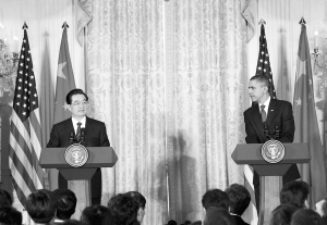 国家主席胡锦涛1月19日在白宫同美国总统奥巴马举行会谈。两国元首一致同意,顺应时代潮流,致力于共同努力建设相互尊重、互利共赢的中美合作伙伴关系。两国元首全面规划了发展今后一个时期中美关系的重点方向和深化双方合作重点领域,达成重要共识,取得丰富成果。