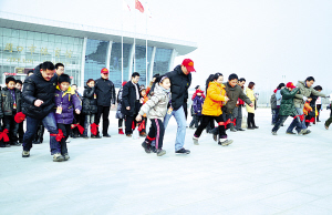本报讯 “加油!加油!”昨日下午,一阵阵呼喊声响彻整个周口市体育馆南广场上空,这是周口晚报小记者举行的迎新春趣味活动中“两人三足”比赛的热闹场面(如图)。