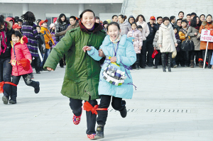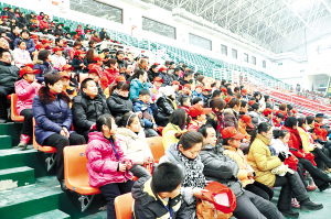 昨日下午,周口晚报小记者迎新春趣味活动在周口市体育馆举行,共有近800名小记者和家长参加了“传球接力”和“两人三足”比赛。一个个小记者精神抖擞,气势逼人,场面热火朝天。这次活动不仅锻炼了孩子们的身体,提高了动作协调能力和相互协作能力,而且还享受到了亲子合作所带来的快乐。
