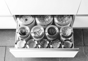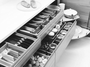 大年夜里最重要的任务当然就是要一起动手做年夜饭啦,所以厨房就需要合理的区域分配,使得大家同时在厨房操作时,依旧井然有序。例如,清洗完的一大堆食材可以放进滤碗里,不仅干湿分开,还能很快滤干食物。然后再把藏在橱柜下的小推车拉出来,多出一块立体空间,将食材分门别类地放在推车上,当然也能利用小推车为大家准备水果拼盘。