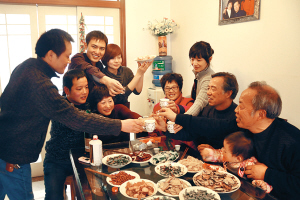 新春佳节,亲朋团圆举杯同庆。记者 王映 摄