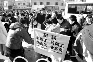 2月9日,进城务工人员在青岛长途站劳务市场求职。农历正月初七,不少人还沉浸在节日的气氛里,而青岛市各劳务市场已是人头攒动,用工求职开始升温。记者从青岛市人社局了解到,针对春节后农民工返城就业的高峰期,青岛市将在2月9日至4月底开展“就业促进春风行动”,其间全市各级人才市场、人力资源市场及网络等载体将举办各类招聘服务活动470余场次。新华社发