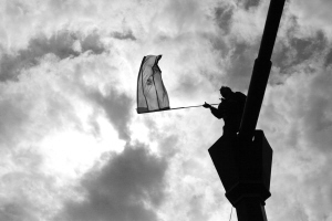 6日,在开罗市中心的解放广场,一名游行者挥舞旗帜。新华社发