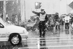 交警雪中执勤