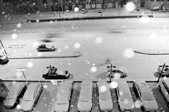 北京降下 60年来 最晚初雪 2月10日清晨,行人和车辆在北京街头冒雪前行。当日凌晨,北京降下60年来最晚初雪。新华社发