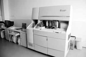 该机检测结果准确,检测速度快(纯生化检测速度为1600T/h,电解质检测速度为900T/h)。现开展项目有:肝功能、肾功能、电解质、血糖、淀粉酶、胆碱酯酶、心肌酶谱、血脂、糖化血红蛋白、腺苷脱氨酶、血尿酸、抗O类风湿因子定量、补体C3、C4、免疫球蛋白IgG、IgA、IgM、心梗标志物(肌钙蛋白、肌红蛋白、超敏C反应蛋白)、同型半胱氨酸(HCY)、胱抑素C(Cysc)、前白蛋白、尿微量白蛋白、β2微球蛋白、C反应蛋白、a-岩藻糖苷酶(AFU)等。
