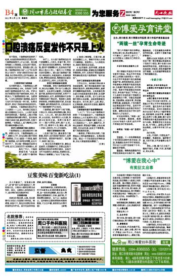 春节期间,口腔溃疡的患者多了起来,有些患者的病情甚至反复发作。口腔溃疡虽算不上什么大病,然而缠绵难愈让人很烦恼,尤其在春节期间,面对美食无法享受,更是惹人烦上加烦。口腔溃疡真的只是“上火”吗?如何防止与治疗?本报与您共同关注口腔溃疡,告诉你如何防止及尽快愈合,保证让你在元宵节张开大口吃上美食大餐。