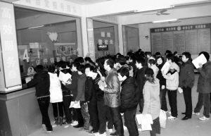 昨天上午,在鹿邑县婚姻登记服务大厅内,几十名青年男女排着长队等待办理结婚登记手续。